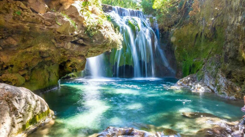 - Akchour Waterfalls (near Chefchaouen): A series of cascades and natural pools in the Rif Mountains, including the famous God’s Bridge rock formation. Calmer and more serene than Ouzoud. Moderate hike, perfect for swimming in icy turquoise waters.